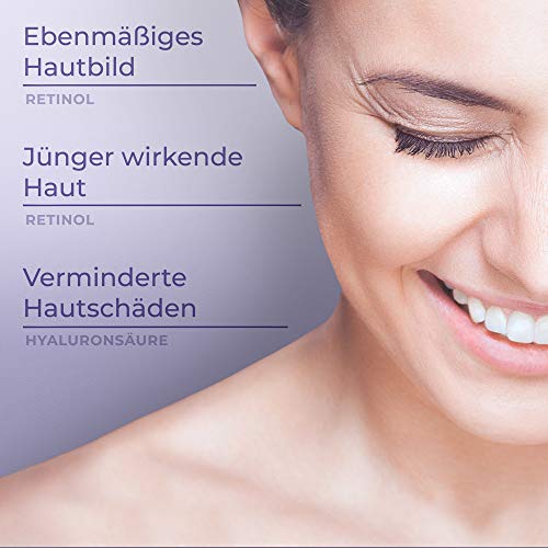 ✔ ANTI-ETÀ: Il retinolo stimola la produzione di collagene ed il ringiovanimento cellulare, mentre l'acido ialuronico favorisce l'idratazione cutanea - Per una pelle sempre liscia e levigata