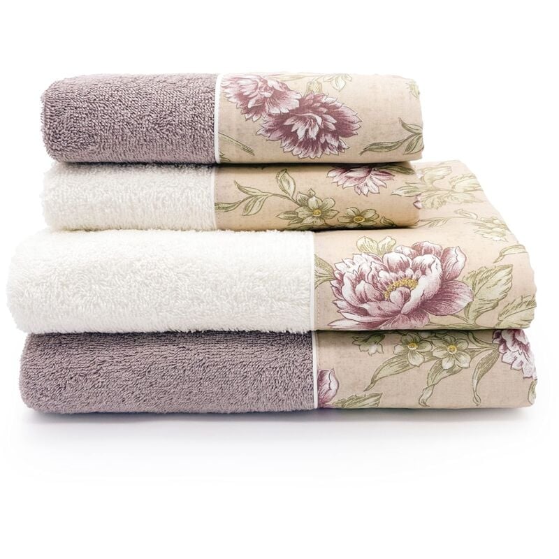 Set di asciugamani, 2 viso e 2 ospite, caratterizzati dall'applicazione di una balza a tema floreale. L'asciugamano viso misura 60x110cm e l'asciugamano ospite misura 40x60cm. I nostri prodotti per la biancheria della casa sono interamente ideati e progettati all'interno della nostra azienda. Vengono seguiti ad ogni passo, dalla prima idea al confezionamento finale. Lasciati avvolgere e coinvolgere dalla loro unicità e ricercatezza.