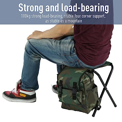 Creperture Sgabelli da Campeggio Pieghevoli per Esterni, Sedia da Campeggio Portatile in Tessuto Oxford con Zaino Carico Massimo 100kg per Pesca, Campeggio, Picnic, Barbecue, Mimetico
