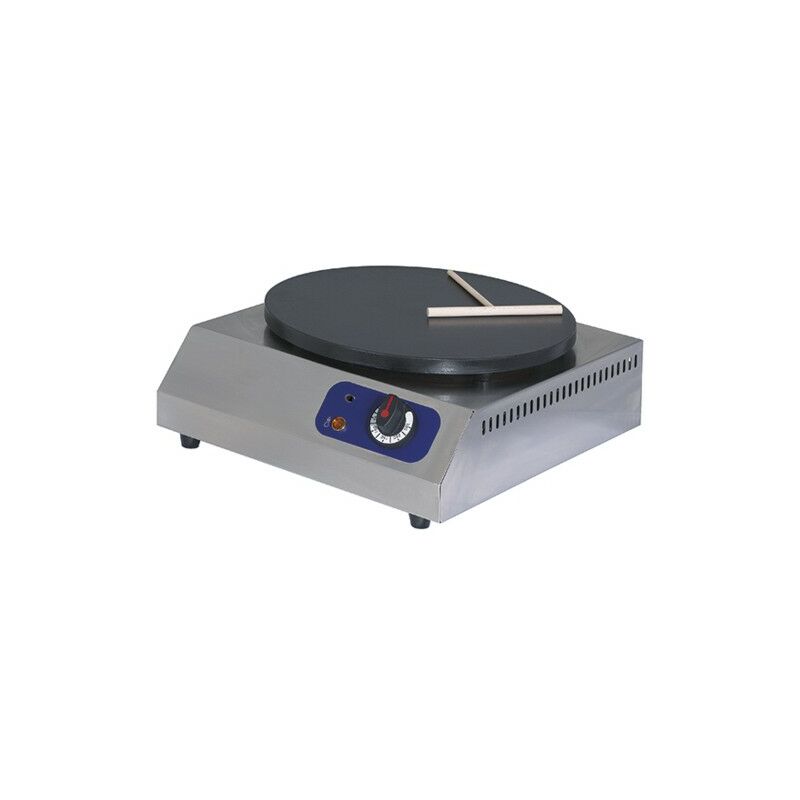 Codice RS0673 - Crepiera tonda elettrica, modello ST-2231G, 230 volt, 3.0 kw, dimensioni cm. 47x47x19 (lxpxh), diametro piastra cm. 40 senza incavo perimetrale. Piatto in ghisa speciale lucida antiaderente. Interruttore bipolare. Lampada verde di rete. Lampada arancio per inserimento resistenze. Termostato di regolazione fino a 300 °C.