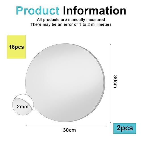 Decorazione fai da te: questo specchio rotondo autoadesivo in acrilico misura 30 x 30 cm, spessore 2 mm, specchio adesivo 16 pezzi di nastro biadesivo. Facile da sistemare e abbinare. Puoi usare la tua creatività per combinare le piastrelle a specchio in qualsiasi forma per decorare la parete. Usa più pezzi per combinarlo facilmente in uno specchio per tutto il corpo.