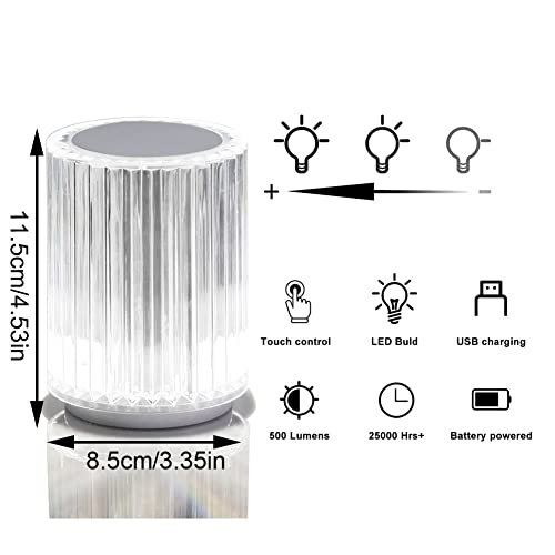 Cresitch Lampada Da Tavolo, Lampada Touch In Cristallo, Luce Notturna LED Senza Fili, Lampade Da Tavolo Ricaricabile USB, Lampada Da Comodino Camera Da Letto con Telecomando (H 11.5CM, 3 colors)