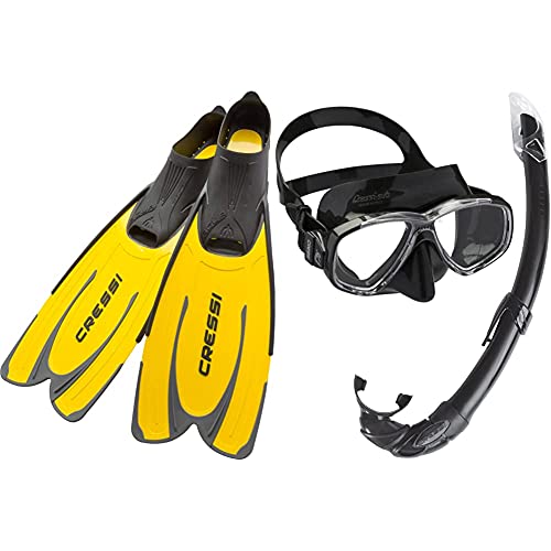 Cressi Agua, Pinne Self Adjusting per Immersioni, Snorkeling E Nuoto Unisex Adulto, Giallo, 43/44 & Mare Combo, Set Maschera Sub Perla E Snorkel Mexico Unisex - Adulto, Nero, Unica