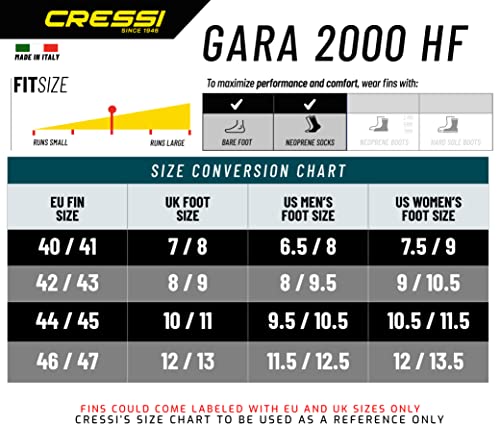 Cressi Gara Pinne Lunghe per Apnea/Immersioni Alte Prestazioni, Argento (2000 HF Nero), 42/43