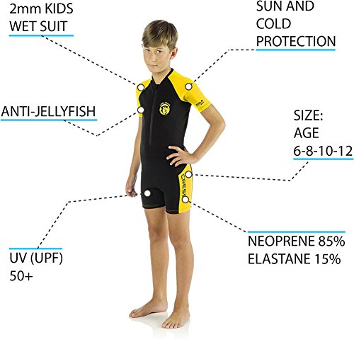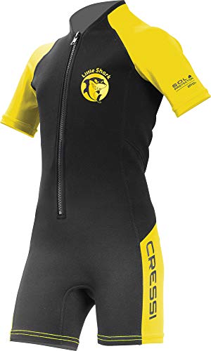 Cressi Little Shark, Shorty Wetsuit 2 mm, Muta Shorty Junior Disponibile a Maniche Corte o Maniche Lunghe Unisex - Bambini, Nero/Giallo, 11/12 Anni
