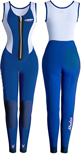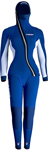 Cressi Medas Lady Complete Wetsuit 5 mm, Muta Composta da Pantalone/Corpetto Giacca Zip Diagonale con Cappuccio Donna, Blu (Silver), XS