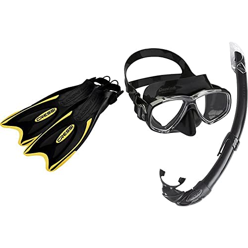Cressi Palau, Pinne Regolabili per Immersioni, Apnea e Snorkeling Unisex Adulto, Nero/Giallo, 41/44 EU & Mare Combo, Set Maschera Sub Perla e Snorkel Mexico Unisex - Adulto, Nero, Unica