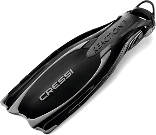 Cressi Reaction Ebs Fins Pinne Alte Prestazioni per Immersione con Ebs Strap, Unisex Adulto, Nero/Argento, S/M (39/42)