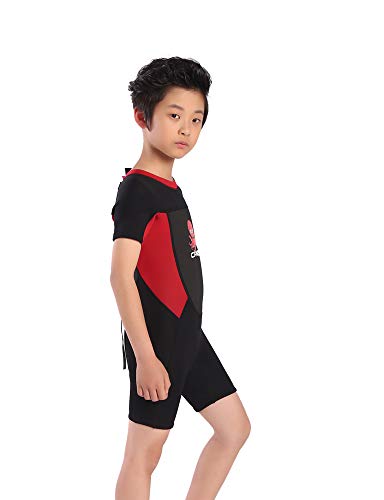 Cressi Smoby Wetsuit, Muta Shorty in Premium Neoprene 2 mm Unisex Bambini, Nero/Rosso, 3/4 Anni