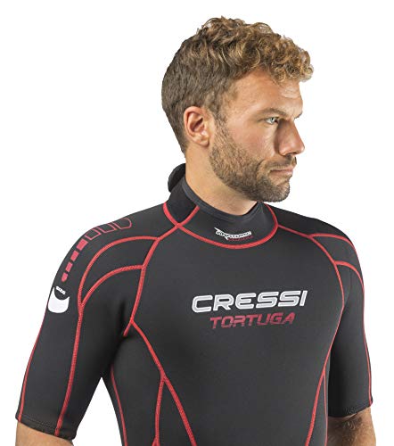 Cressi Tortuga Man Wetsuit 2.5mm, Muta Shorty in Neoprene High Stretch Uomo, Nero/Rosso, L