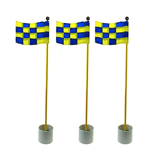 Crestgolf 3 set di bastoncini da golf per praticare il cortile, 3 sezioni, bastoncini per bandiere verdi da golf (a scacchi blu-gialli)