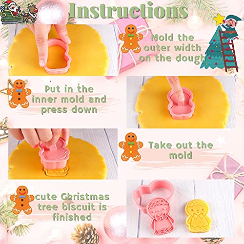 Crethink - Set di 6 formine per biscotti natalizi 3D, stampabili a forma di pan di zenzero, Babbo Natale, stampini per pasticceria da cucina