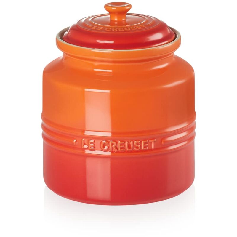 Questo barattolo per biscotti in gres vetrificato è ideale per mantenere freschi i tuoi biscotti, può essere utilizzato anche per conservare ingredienti come farina, zucchero, riso, avena, muesli, snack e molto altro, aggiunge un tocco di colore al bancone della tua cucina, Design robusto e minimalista, la chiusura ermetica mantiene il contenuto fresco, pezzi coordinati in gres vetrificato disponibili per una cucina con colori coordinati, Gres vetrificato robusto con smalto resistente alle scheggiature, Facile da usare e da pulire: prodotto adatto per l'uso nel congelatore, smalto antimacchia, facile da lavare a mano, lavabile in lavastoviglie, garanzia 10 anni, Contenuto: 1x Le Creuset Barattolo porta biscotti in gres vetrificato, Dimensioni: L 17 x P 17 x H 20,4, Peso: 1,59 kg, capacità: 2,4 litri, colore: Arancio, 91026725090000