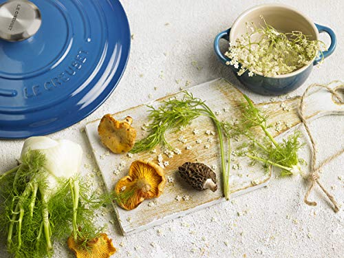 Contenuto: 1 Casseruola Evolution in ghisa con coperchio Le Creuset, Ø 26 cm, Rotonda, Dimensioni con impugnature e coperchio: 35,3 x 27,4 x 17,2 cm, Peso: 5,135 kg, Colore: Blu Marsiglia