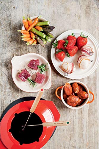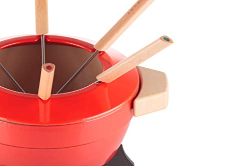 Le Creuset Set per la fonduta in Ghisa, Incl. 2 impugnature in legno, paraschizzi, fornellino e 6 forchettine, Capacità 2,3 L, Rosso (Ciliegia)