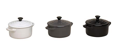Le Creuset Set di Mini Cocotte, 3 Pezzi, Rotondo, 200 ml, 10 X 5 cm, Gres, Nero/Grigio/Bianco