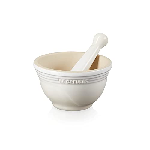 Le Creuset Mortaio con pestello in gres vetrificato, diameter 11.5 cm, Meringue, 81209307160003
