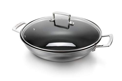 Le Creuset Padella Wok in acciaio inox con int. antiaderente e coperchio in vetro, diameter 30 cm, Volume 4.3L, Compatibile con Tutte le Fonti di Calore (Induzione Inclusa), 96201130001000