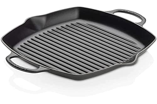 LE CREUSET Signature grill profondo quadrato in ghisa vetrificata con manici di supporto, per tutti i tipi di piani cottura e forni, 30 cm nero matt