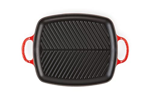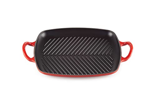 LE CREUSET Signature grill rettangolare basso in ghisa vetrificata con manici di supporto, per tutti i tipi di piani cottura e forni, 30 cm ciliegia