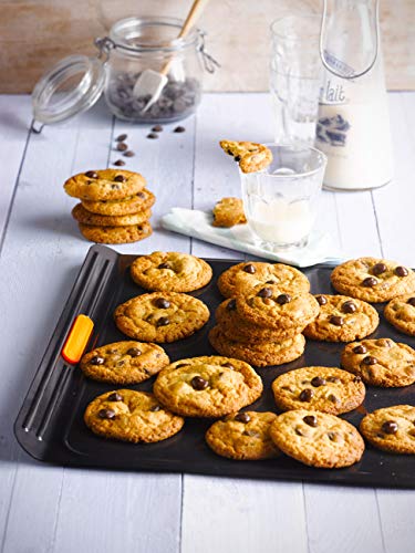 Contenuto: 1x teglia per biscotti, misure interne: 38 x 35.5 cm, dimensioni esterne: 38.1 x 2.26 x 2.25 cm, materiale: acciaio al carbonio/silicone, peso: 1060 g, colore: antracite/arancio