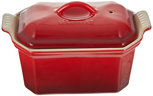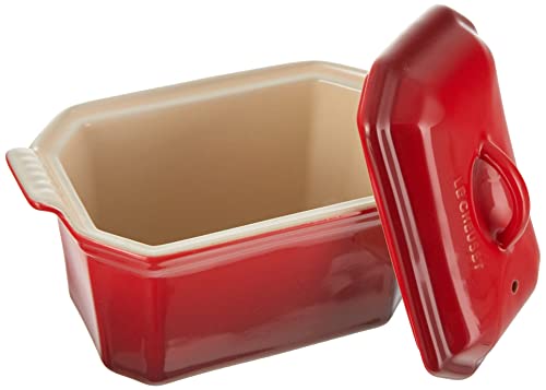 Le Creuset Terrina Rettangolare, con Pressa Integrata, 19 x 11.4 cm, Gres, Rosso (Ciliegia)