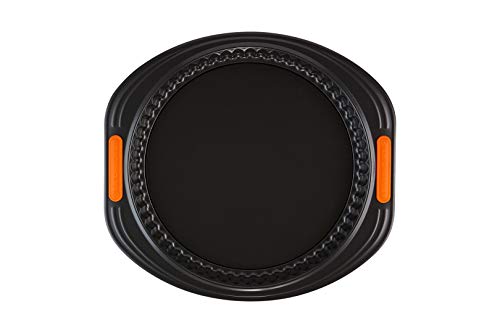 Contenuto: 1x Le Creuset tortiera, diametro: 28 cm, dimensioni esterne: 34.4 x 32 x 3.75 cm, materiale: acciaio al carbonio/silicone, peso: 830 g, colore: antracite/arancio