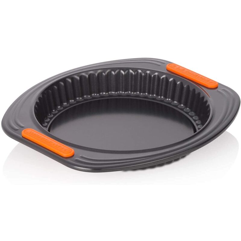 Tortiera in acciaio al carbonio con rivestimento antiaderente, bordo ondulato per una facile cottura di deliziose torte alla frutta, anche senza utilizzare olio o burro, pratica base removibile, Resistente alle sostanze acide, resistente in forno fino a 240°C, rivestimento antiaderente, Distribuzione del calore uniforme e ottimale grazie al bordo in acciaio al carbonio, inserti in silicone per una presa efficace, anche con presine e guanti, Facile da pulire tramite risciacquo con acqua tiepida, non lavabile in lavastoviglie, Contenuto: 1x Le Creuset tortiera, Diametro: 26 cm, Dimensioni esterne: 31.8 x 29.4 x 3.75 cm, Materiale: Acciaio al carbonio/Silicone, Peso: 720 g, Colore: Antracite/Arancio, 941007320