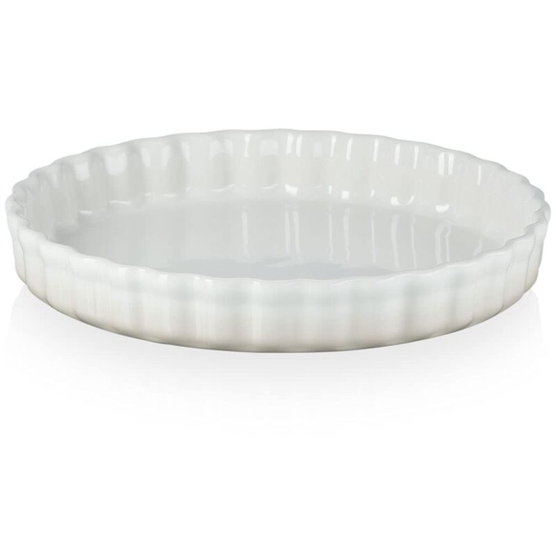 Tortiera in gres vetrificato con bordo rotondo ondulato, ottimo per sformati, crostate, torte e quiche, diametro di 28 cm, disponibile in un'ampia gamma di colori, Pratica da usare e pulire: adatta al freezer, vetrificazione antimacchia, facile da lavare a mano, lavabile in lavastoviglie, Gres vetrificato robusto, vetrificazione durevole e anti graffio, riscalda le pietanze in modo uniforme, conserva il calore a lungo, resiste al calore fino a 260° C, Per servire in tavola con eleganza direttamente dal forno o dal frigorifero, ottimo come regalo, Contenuto: 1x Le Creuset Tortiera Tradition rotonda, 1x Libretto d'uso e manutenzione, Materiale: Gres, Dimensioni: 29.9 x 29.9 x 4.8 cm, Capacità: 2.1 L., Peso: 1.82 kg, Colore: Meringue, 71120287160001