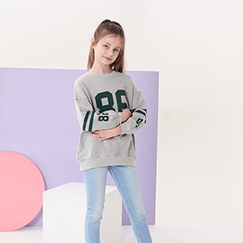 Crew Felpa Pullover Ragazza Maglione Sciolto Bambina Maglietta a Manica Lunga Bambino(Grigio,11-12 anni/160)