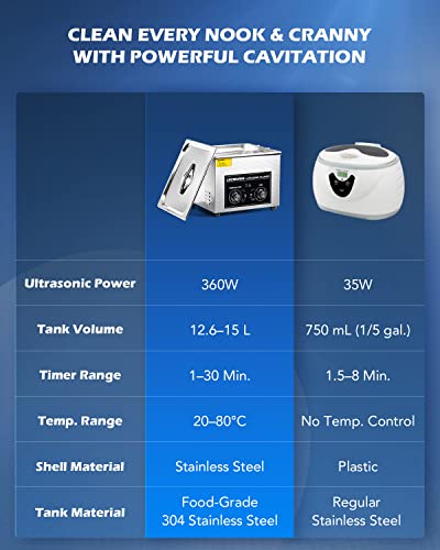 360W CAVITAZIONE ULTRASONICA: Questo pulitore ad ultrasuoni industriale utilizza 360 W di potenza per riempire il serbatoio 15 L con bolle di cavitazione, utilizzando la forza delle loro piccole implosioni per pulire accuratamente e professionalmente anche le superfici piccole e intricate;