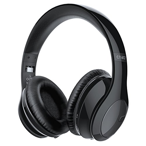 Criacr Auricolare Bluetooth Senza Fili, Cuffie Bluetooth, Cuffie per lettore MP3, Fascia Girevole Pieghevole, Microfono Incorporato, Auricolari Traspiranti per Telefono Cellulare, Tablet, PC (Nero)