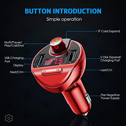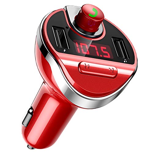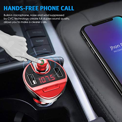 Criacr Trasmettitore Bluetooth per Auto, Trasmettitore FM Bluetooth con Doppia Porta di Ricarica USB, Chiamata a Mani Libere, Lettore Musicale Supporta TF Card e Disco USB (Rosso)
