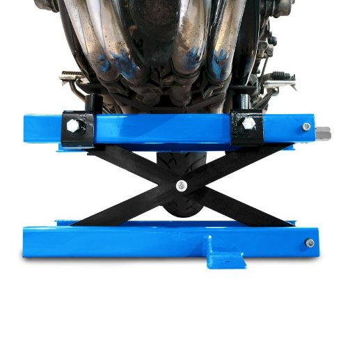 Ponte sollevatore robusto per la casa e l‘officina. Può essere piazzato sotto il telaio, il motore o il forcellone. Rende i lavori agli assali comodi e sicuri