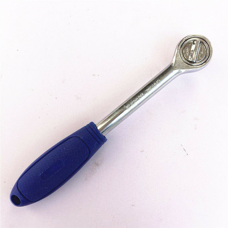 Cricchetto da 1/2" (12,5 mm) con sgancio rapido, lunghezza: 255 mm, peso: 400 g Il nucleo è realizzato in acciaio al cromo vanadio. Robusta impugnatura sfalsata composita. < p> Cuscinetto a sfere a molla per una presa sicura Pulsante a sgancio rapido per abbinare e sostituire le prese