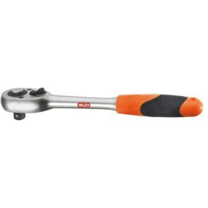 Corpo in acciaio cromo vanadio - Inversione tramite leva - Meccanismo di sgancio rapido della bussola - Impugnatura morbida bimateriale.
