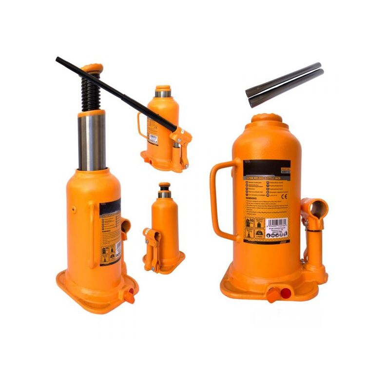 Crick Cric Idraulico per auto a bottiglia Sollevatore Martinetto 16Tonnelate Martinetto a pressione idraulica (con olio), l'utilizzo semplicissimo vi permetterà di sollevare fino a 16T (tonnellate) con il minore sforzo possibile. Basterà metterlo sotto la vettura, inserire l'asta metallica in dotazione e facendo pressione, la vostra auto sarà tirata su senza alcuna difficolta. Per riportarlo alla posizione originaria, non dovrete far altro che allentare la pressione dell'olio attraverso la vite a farfalla, in modo da far scendere il pistone Caratteristiche tecniche: Sollevatore con sistema idraulico a pressione Massimo peso supportato: 16T Composto interamente in lega metallica Lunghezza totale asta: 43 cm Altezza: 22 cm circa Altezza massima: 45cm circa Base: 12 x 12 cm circa Contenuto della confezione: Nr. 1 Crick Nr. 1 Asta metallica