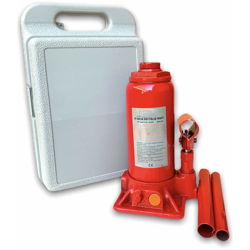 Utilissimo ed indispensabile per qualsiasi automobilista da tenere sempre in auto cosi da essere pronti in caso di emergenza. Grazie alla sua forma a bottiglia conferisce a questo accessorio un minimo ingombro con una massima facilita di trasporto e di utilizzo. Realizzato interamente in acciaio verniciato dotato di testa per l appoggio della vettura scalato per una presa ottimale e renderlo antiscivolo con la possibilità di avere una testa che si svita cosi da aumentare l altezza totale Dotato di tappo per il rabbocco olio idraulico e farfalla di sicurezza. Caratteristiche tecniche: Crick auto Martinetto a bottiglia Sollevatore con sistema idraulico a pressione Massimo peso supportato: 6000 Kg (6T) Composto interamente in lega metallica Altezza da riposo circa 20 cm Altezza esteso circa 33 cm Altezza esteso con testa svitata circa 39 cm La confezione contiene: Nr. 1 Crick auto