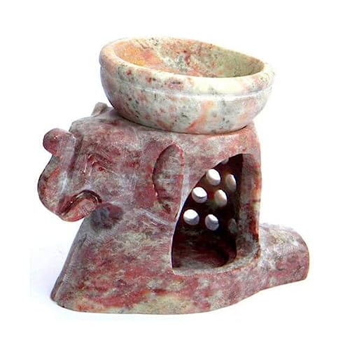 CRIGEMA - Brucia Essenze in Pietra ollare Elefante - Bruciatore con portacandela e Diffusore di Olio Essenziale - Design e Artigianato indiano - Aromaterapia, Decorazione, Meditazione (Elefante)