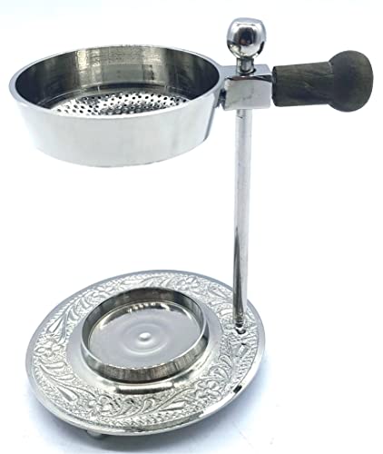 CRIGEMA - Bruciatore di Incenso in ottone argentato - Manico di legno e Piastra perforata - Regolabile in Altezza - Ideale per Resine - Candela Tealight in Regalo (Argento)