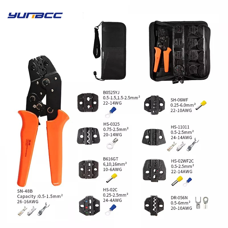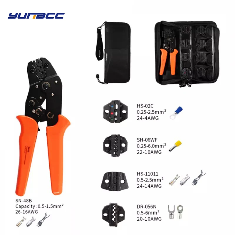 1 set crimping tool for 4.8 6.3 terminal crimper sn-48b crimping pliers wire 0.5-1.5mm2 alicate AWG 20-15 hand tool kit