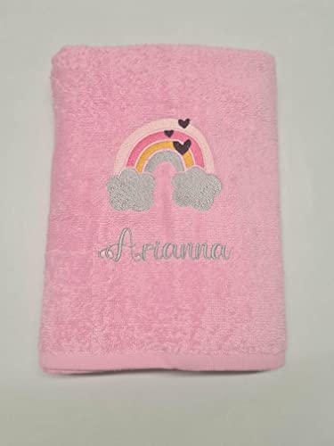 CrisArt Asciugamano grande 100% cotone personalizzato con ricamo nome e disegno bambine unicorni a scelta, ideale asilo nido o tutti i giorni (rosa)