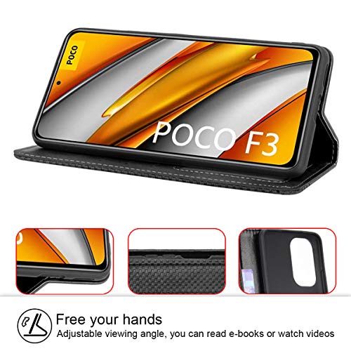 [Magnetic and Kickstand Feature] - Il cover per Xiaomi Poco F3 5G a portafoglio può essere chiusa da una chiusura magnetica,inoltre può essere utilizzata come cavalletto,è molto comodo guardare moive o video.