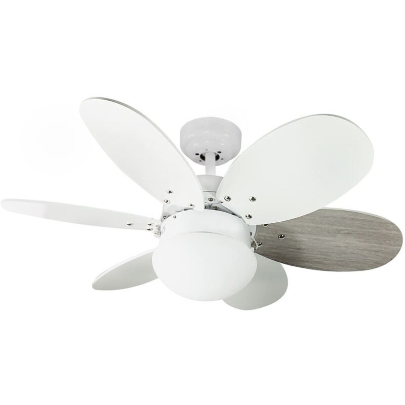 Cristal Orion Ventilatore da soffitto AC con luce bianco-cenere | Materiale: acciaio, MDF | Classificazione IP: IP20 | Altezza massima: 38 cm | Diametro: 76 cm | Peso: 5,2 kg | RPM: 128/192/238 | Caratteristica: Adatto per Soffitto inclinato: max. 14° | Funzione di controllo: opzionale | Caratteristica: Dimensioni camera: 13 m² | Funzione estate inverno: sì