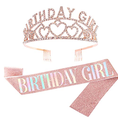 Cristalli per Compleanno Corona,Birthday Girl Corona Decorazioni,Compleanno Tiara Corona,Accessori per Cintura Corona per Compleanni e Feste,Regalo per la Festa (Corona + Sash)