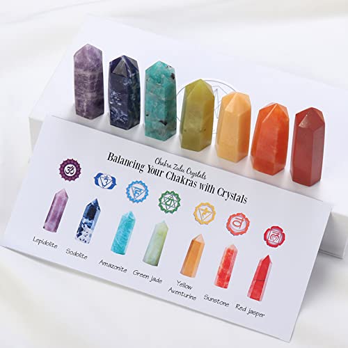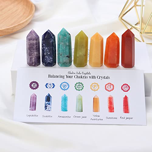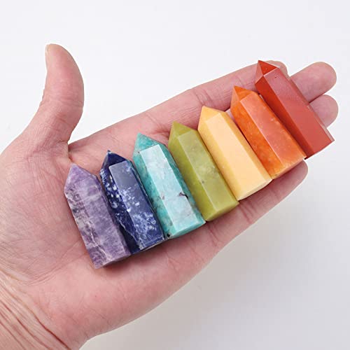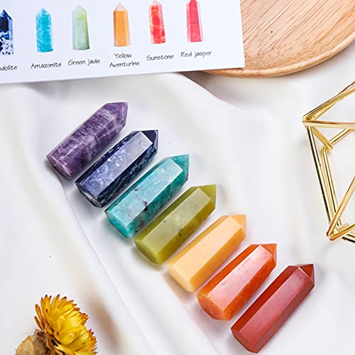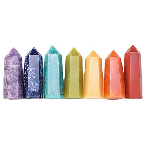7 pietre preziose chakra set di bacchette di cristalli di guarigione grezzi a punta esagonale, per Wicca ed energia, avvolgimenti di fili, griglie, artigianato, guarigione, decorazione per l'home office