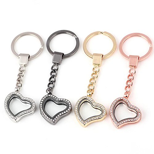 Cristallo Del Cuore Di Fascino Portachiavi Memoria Medaglione Vetro Galleggiante In Oro Rosa