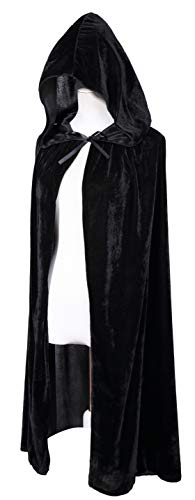 Crizcape Mantello mantello in velluto per bambini con cappuccio, per feste di Halloween 5-7 anni, nero