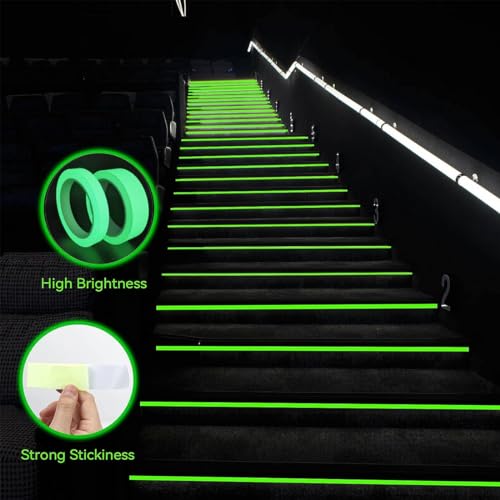 CRLLDPM 2 Pezzi Nastro Luminoso, 3metri x 1.5cm/2cm Nastro Fluorescente Adesivo, Glow in The Dark Tape, Nastro di Avvertenza, Nastro Sicurezza Autoadesivo, Rimovibile Impermeabile