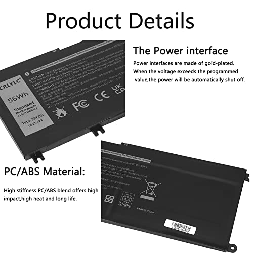 CRLYLC 15.2V 56Wh 33YDH Batteria per Portatile Dell Inspiron 15 7577 17 7773 7778 7779 7786 Latitude 13 3380 14 3490 15 3580 3590 G3 3579 17 3779 G5 5587 G7 7588 Vostro 7570 7580 99NF2 PVHT1 81PF3